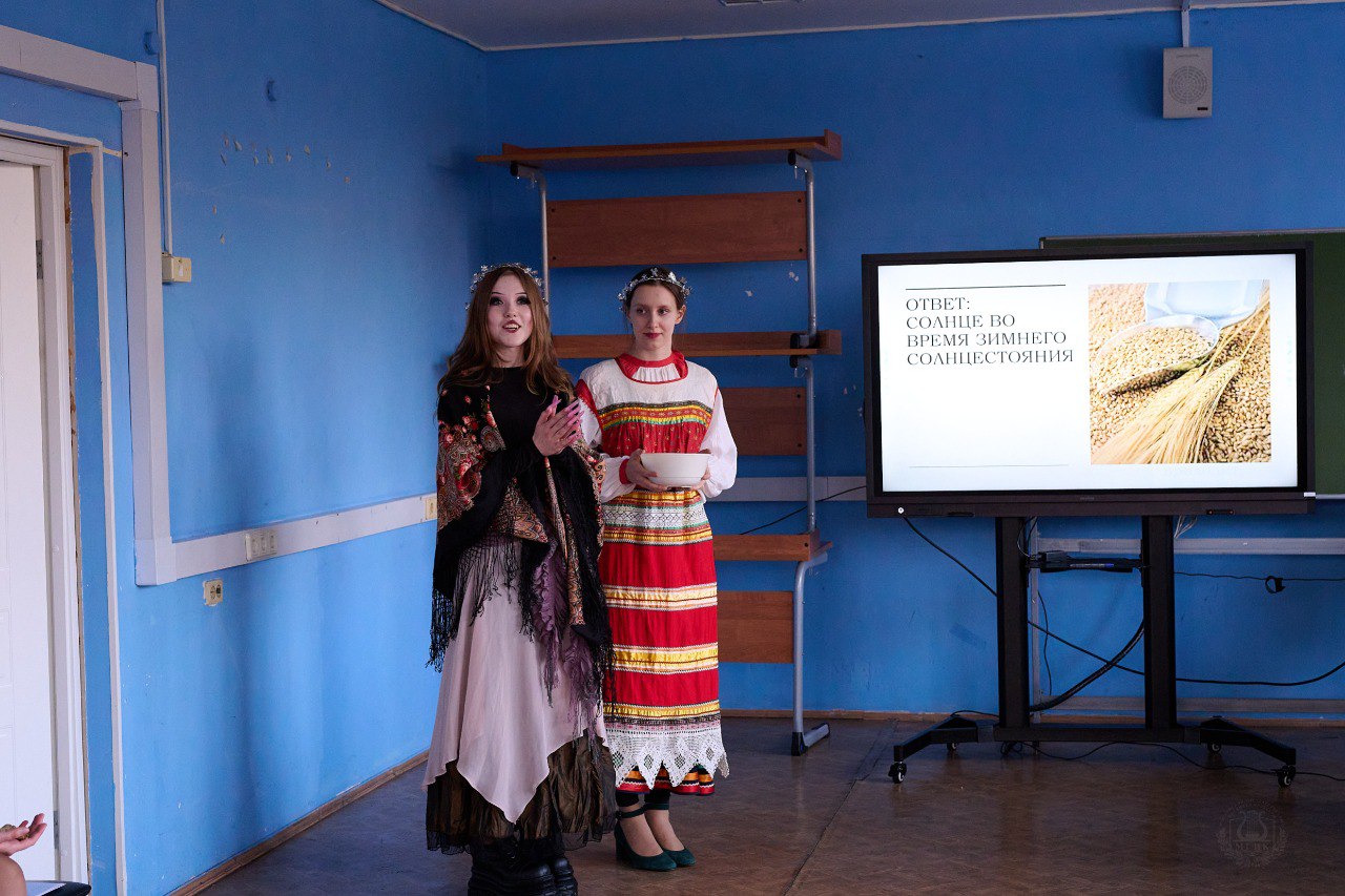 Студенты 4-го курса предложили участникам интеллектуальное испытание — традиционные святочные загадки, направленные на развитие смекалки и знакомство с устным народным творчеством. Особое внимание вызвали подблюдные гадания, подготовленные и проведённые магистрантами 1-го курса, — ритуалы, несущие в себе как этнографическую ценность, так и неподдельный интерес для современной аудитории.